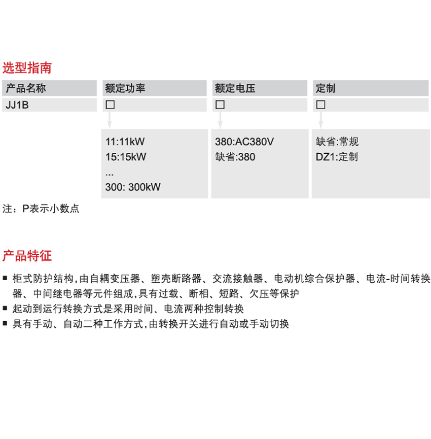 DELIXI德力西JJ1B系列自耦減壓起動(dòng)控制柜 產(chǎn)品參數(shù):